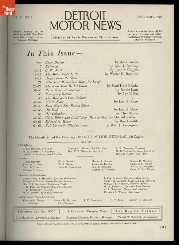Published monthly by the Detroit Automobile Club, Detroit Motor News kept readers informed on a variety of automotive topics. Content included previews and reviews of auto shows, observations on motor vehicle insurance and regulations, and travel logs recounting road trips in the United States and abroad. Issues featured general-interest stories as well.