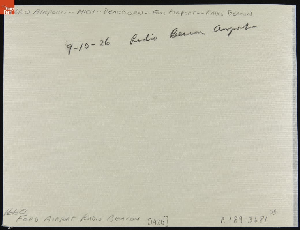 Early pilots depended on landmarks, preventing reliable navigation in bad weather. Henry Ford's engineers developed a radio beacon that simultaneously transmitted two Morse code letters, allowing pilots to steer until the separate signals merged into a steady hum. The original beacon station at Ford Airport (shown here) was removed in 1933 and is now on display inside the museum.