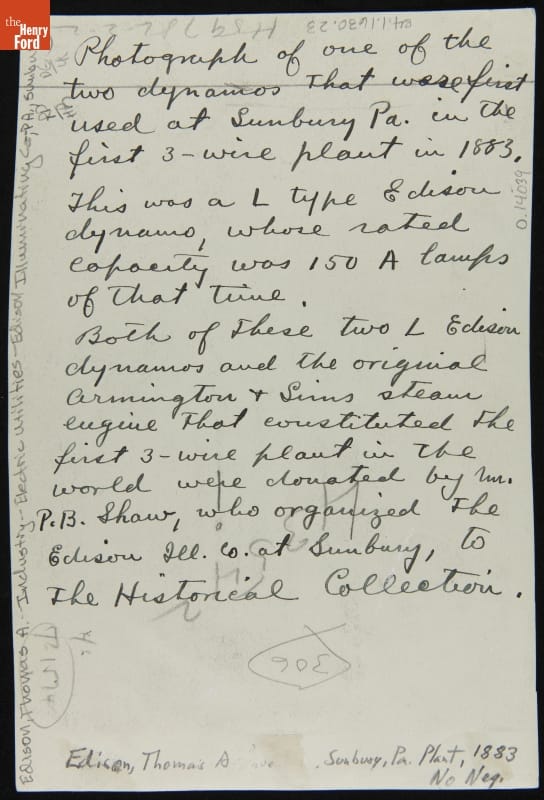 L Type Edison Dynamo at the Sunbury, Pennsylvania Edison Illuminating Company, 1883