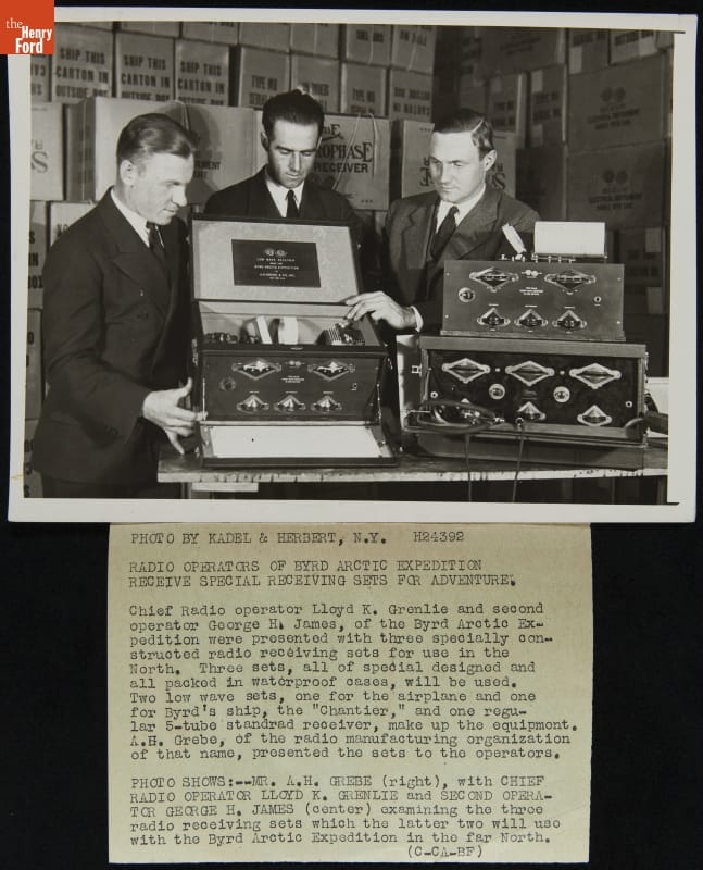 A. H. Grebe Presents Radio Operators with Radio Receivers for Use on the Byrd Arctic Expedition, 1926