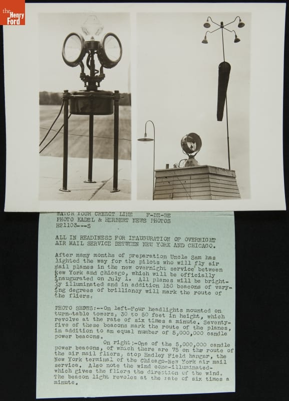 Beacon Light and Wind Cone in Place for First Night Air Mail Service between New York and Chicago, 1925