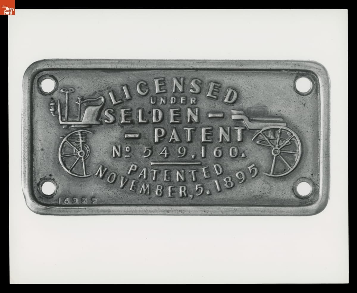 George Selden received a patent for an internal combustion automobile in 1895. Those patent rights were enforced by the Association of Licensed Automobile Manufacturers. Carmakers certified by ALAM paid royalties to the group and displayed plates like this on their vehicles. ALAM was dissolved after losing a lengthy legal battle against Henry Ford in 1911.