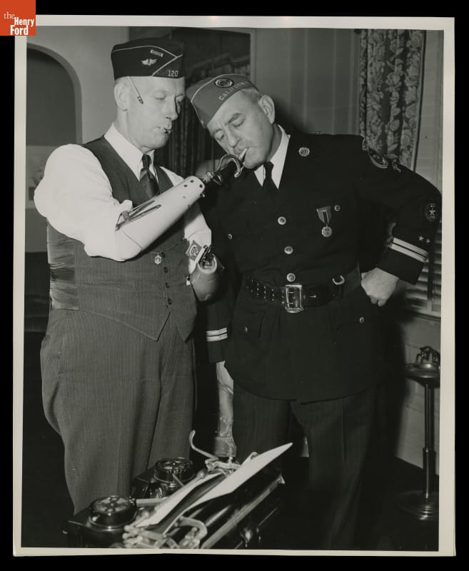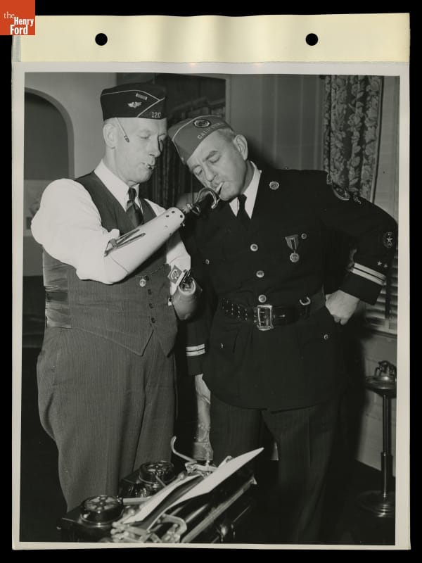 Michigan Disabled Veteran Lighting a Cigarette, 1944