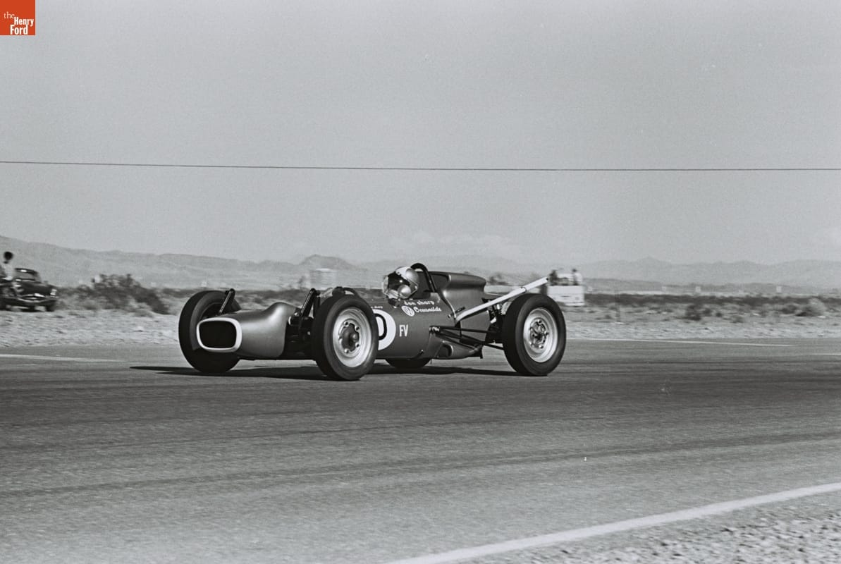 Dave Friedman has captured and preserved auto racing history through his photography. His work -- and his collection of works by other photographers -- documents key races, vehicles, drivers, and teams. In 1968, the Sports Car Club of America hosted regional competitors at Las Vegas's Stardust International Raceway. The track, built to draw crowds to the Stardust Hotel-Casino, lasted only six years (1965-1971).