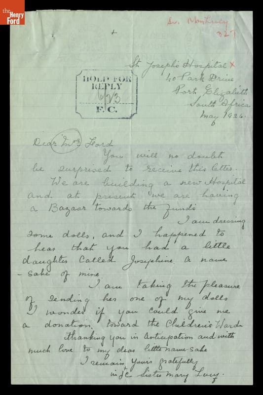 Letter from Sister Mary Lucy of Port Elizabeth, South Africa, to Eleanor Ford, May 1926