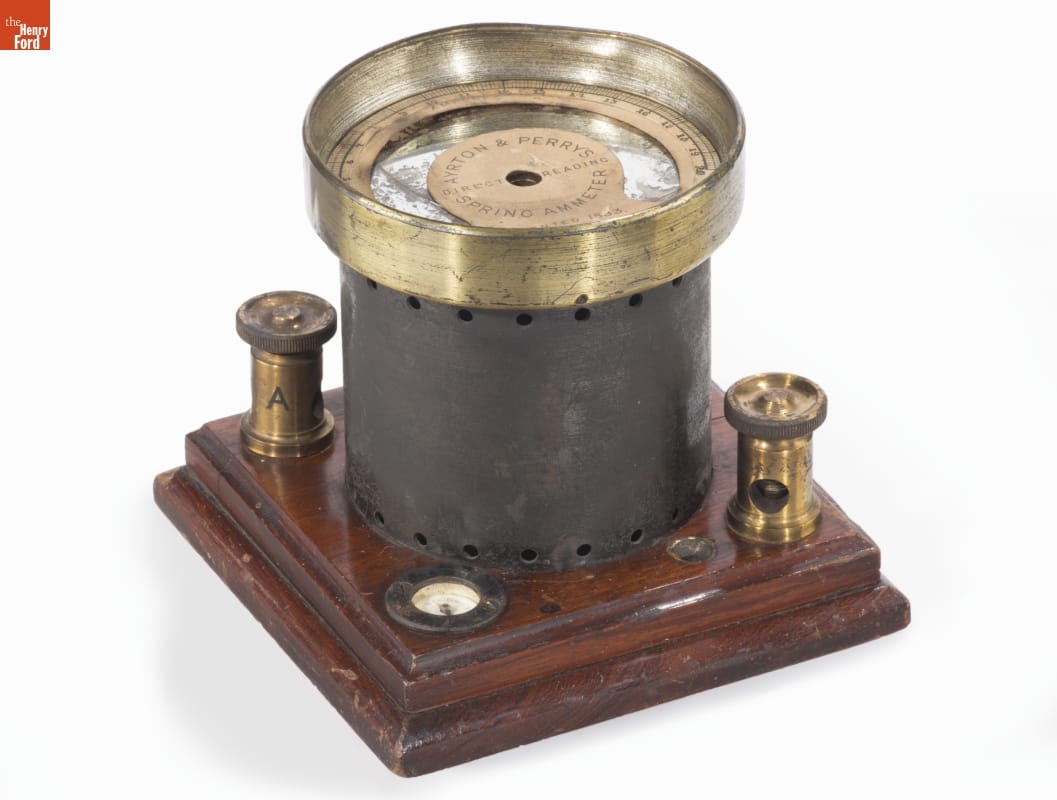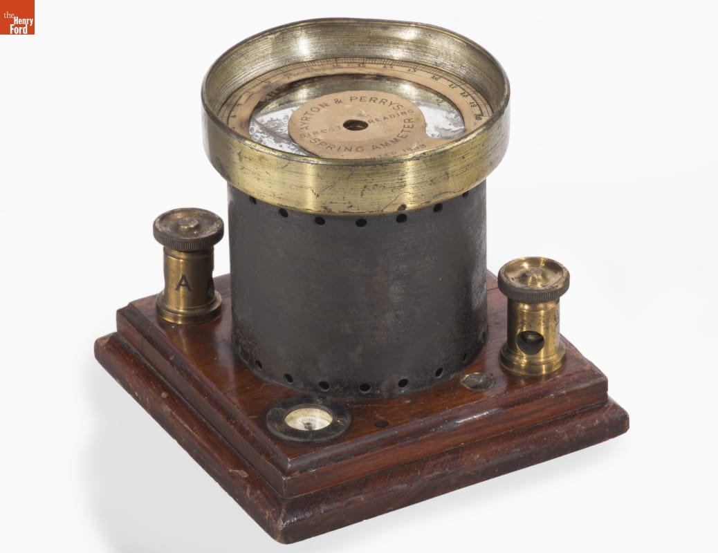 Companies that generated and distributed electrical power in the late 1800s needed equipment to monitor and measure output. Apparatus used in scientific laboratories proved insufficient. Electrical engineers needed robust, rugged, and portable instruments that they could read quickly without performing complex calculations. William Ayrton and John Perry developed this direct reading ammeter among other measuring instruments for the new industry.