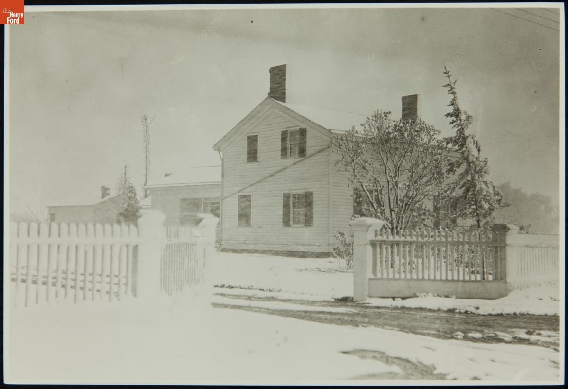 Henry Ford began restoration of his Dearborn, Michigan, birthplace in 1919. He repaired or replaced the farm buildings and filled the small, white clapboard house with original or similar furnishings he remembered from his boyhood. He dedicated the restoration to the memory of his beloved mother, Mary Litogot Ford, who died in 1876. In 1944, the house and outbuildings were moved to Greenfield Village.