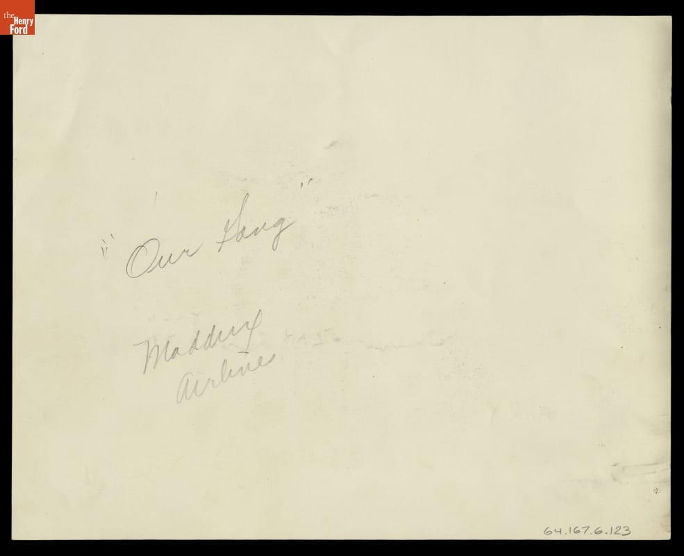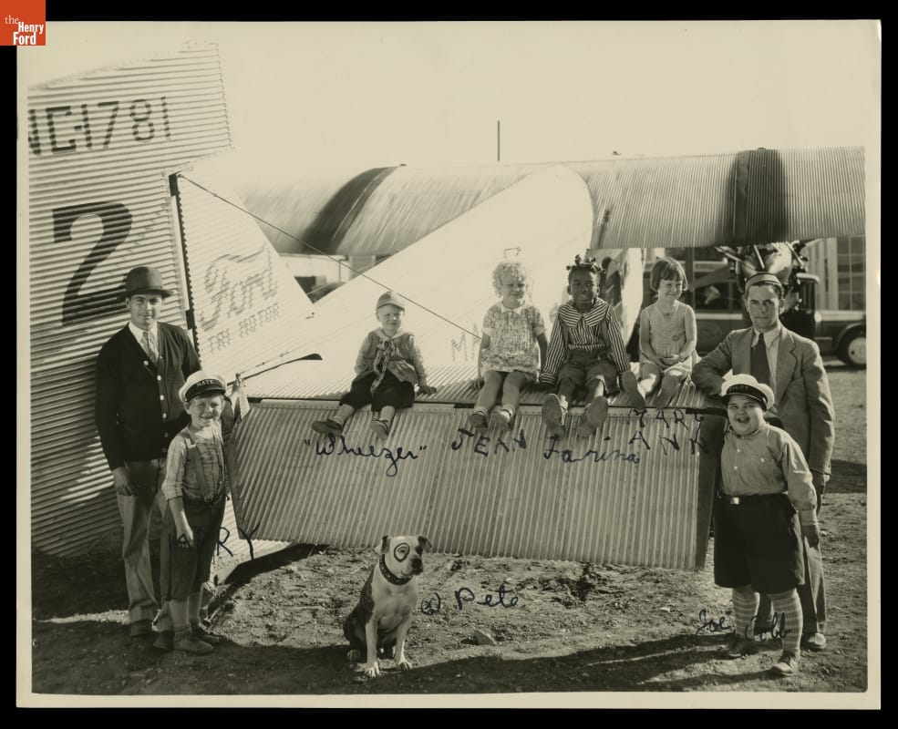 Jack L. Maddux, owner of a Lincoln dealership in Los Angeles, sent autographed pictures of the Our Gang actors to Edsel Ford in 1929. Maddux thought that Ford's children might appreciate photos of the young stars posed on a Ford Tri-Motor airplane. More than 200 Our Gang film shorts were produced from 1922 to 1944.