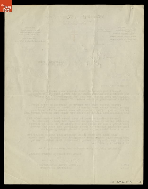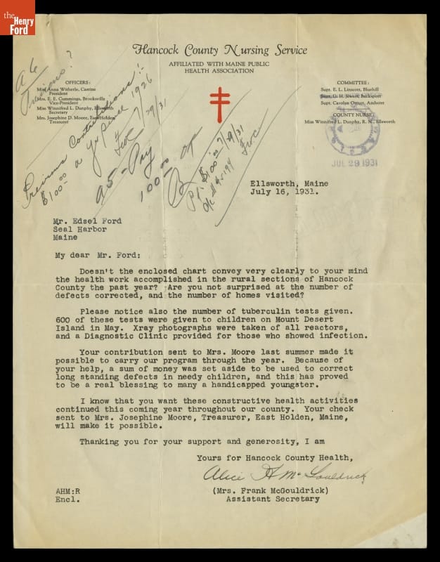 Fundraising Letter from Alice McGouldrick, Hancock County Nursing Service, to Edsel Ford, July 16, 1931