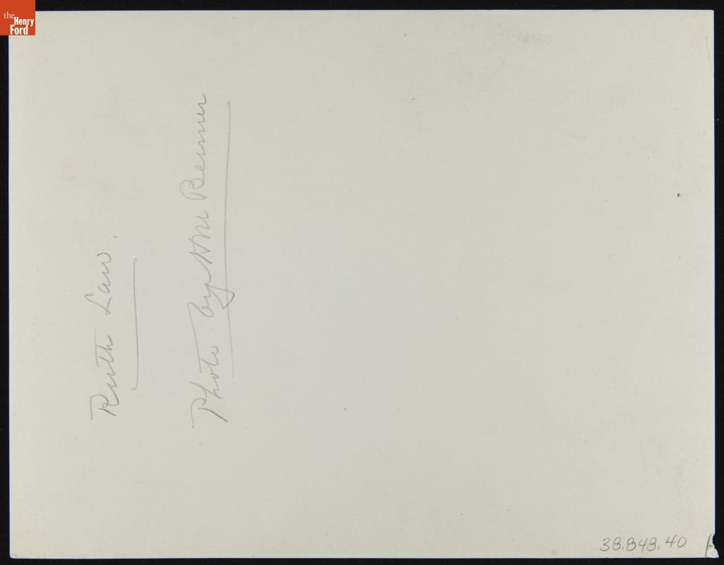 Ruth Law earned her pilot's license in 1912 and soon developed a taste for aerobatics and record breaking. In 1916 she flew 590 nonstop miles from Chicago to the state of New York. During World War I, Law argued unsuccessfully for women to fly in combat roles. Law continued to set records until she retired from flying in 1922.