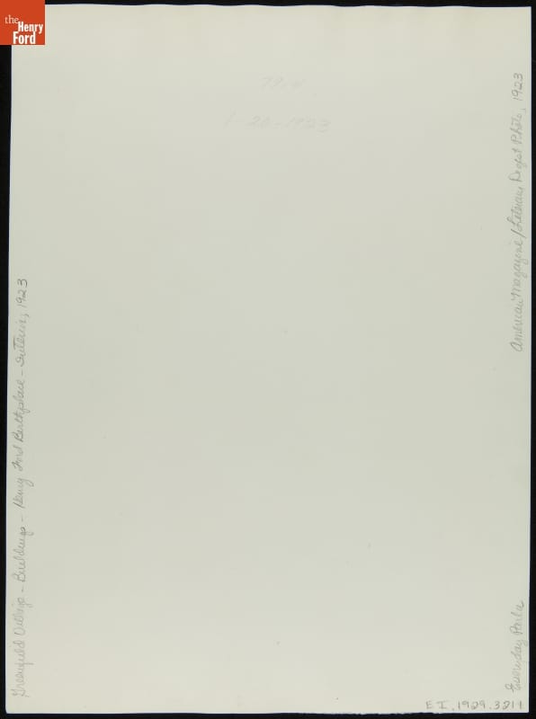 Henry Ford began restoration of his Dearborn, Michigan, birthplace in 1919. He repaired or replaced the farm buildings and filled the small, white clapboard house with original or similar furnishings he remembered from his boyhood. He dedicated the restoration to the memory of his beloved mother, Mary Litogot Ford, who died in 1876. In 1944, the house and outbuildings were moved to Greenfield Village.