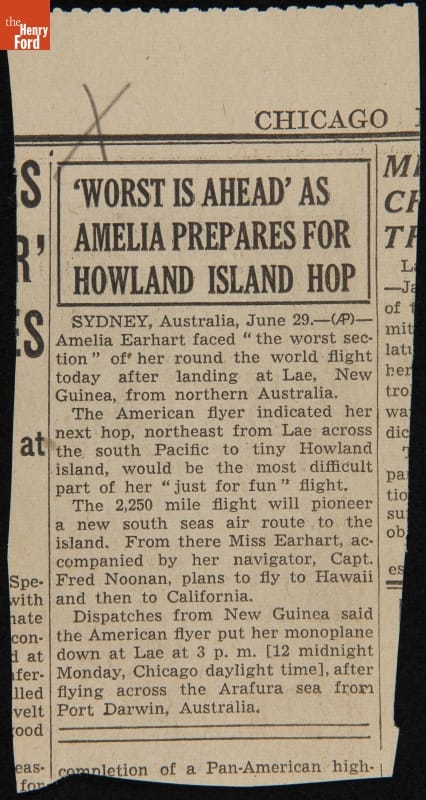 "Worst is Ahead as Amelia Earhart Prepares for Howland Island Hop," June 30, 1937
