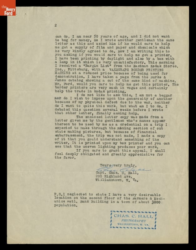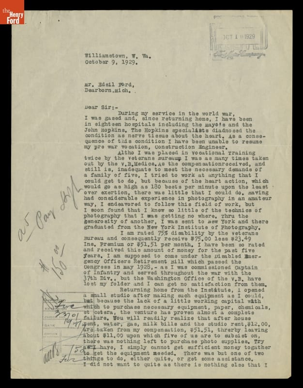 Letter from Charles C. Hall to Edsel Ford, October 9, 1929