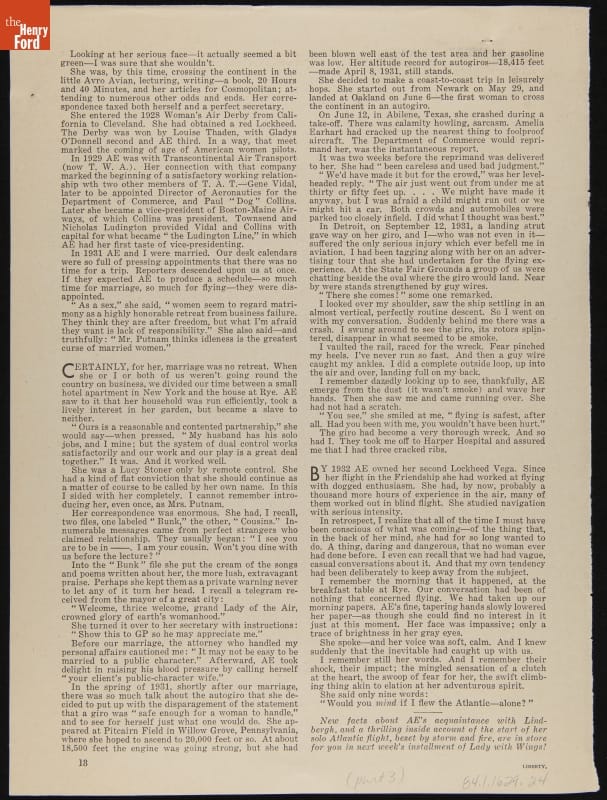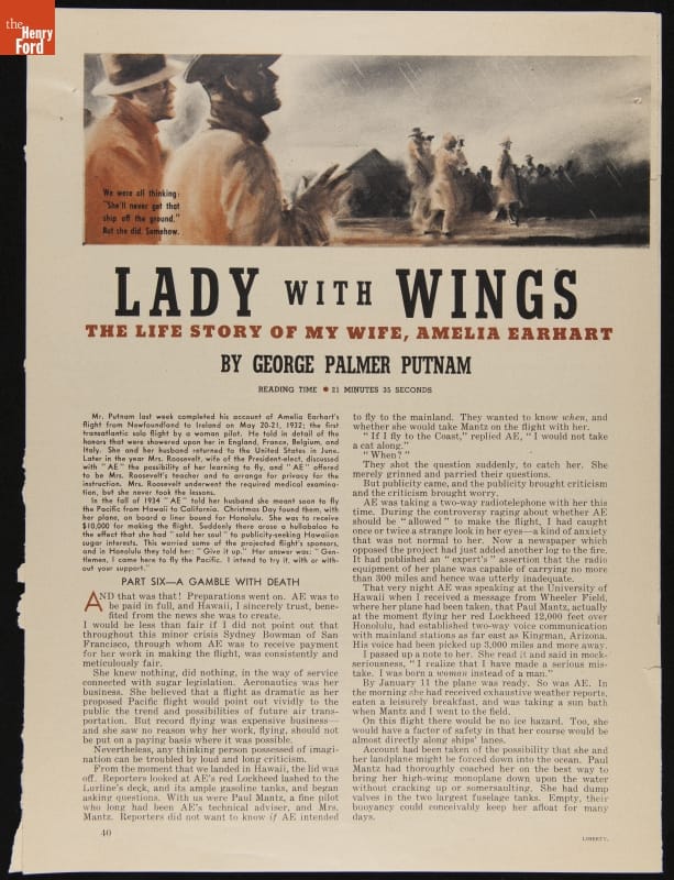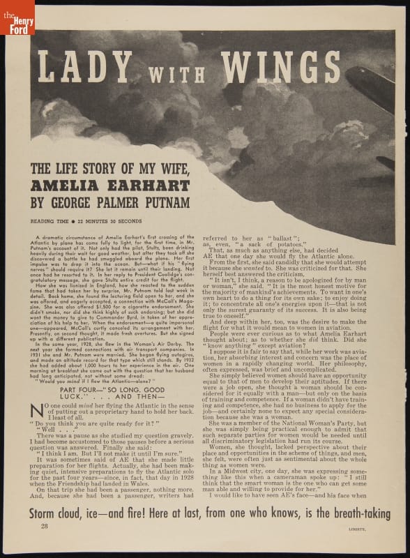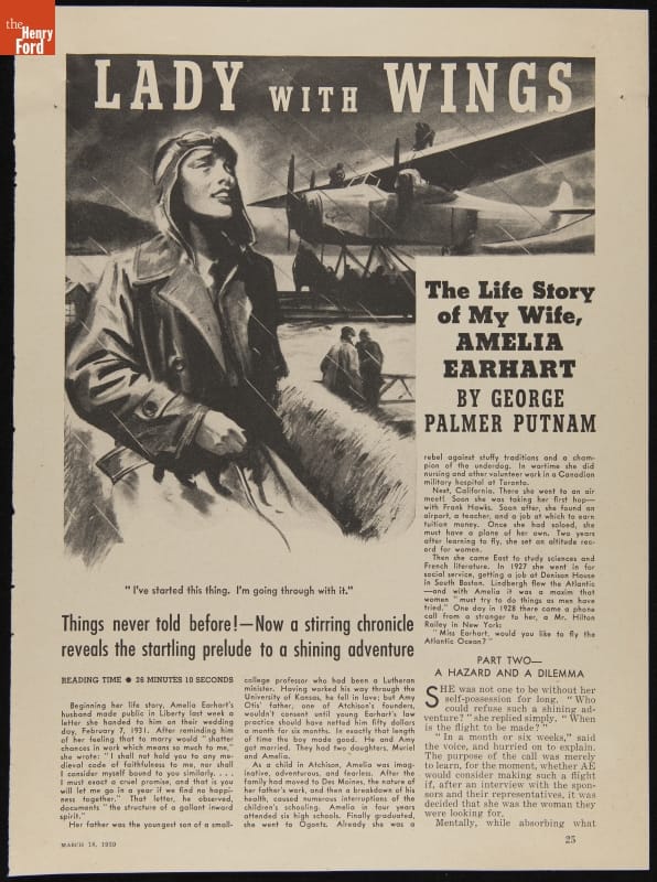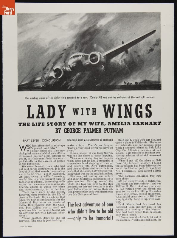 "Lady with Wings, the Life Story of My Wife, Amelia Earhart," 1939