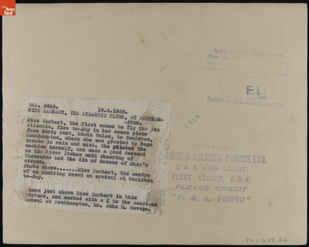 Amelia Earhart Greeted by Crowd at Southampton, June 19, 1928