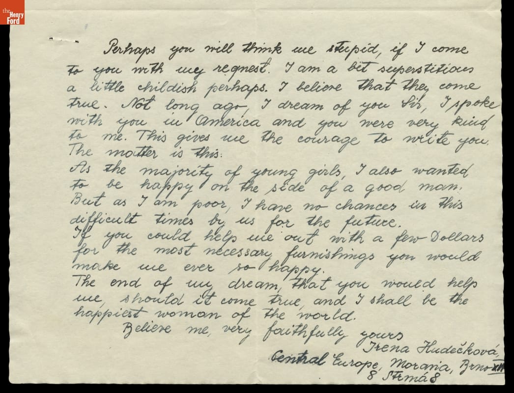 Letter from Irena Hudeckova to Edsel Ford, March 19, 1939