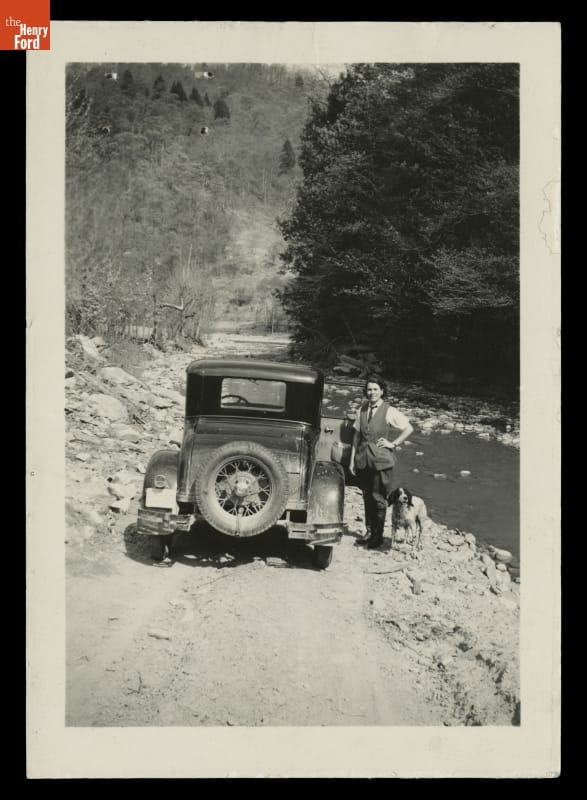 In 1925, Mary Breckinridge established the Frontier Nursing Service to bring qualified nurse-midwives and modern, life-saving healthcare to many inaccessible areas of eastern Kentucky. To support these efforts, Breckinridge cultivated wealthy donors, such as Edsel Ford. In 1939, Edsel had secured a used Ford automobile for use on the back roads of Kentucky. Breckinridge sent Edsel this photo of his contribution.