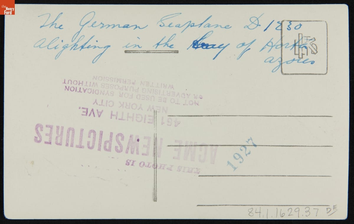 Lilli Dillenz's Junkers D-1230 Seaplane Lands in the Bay of Horta, Azores, 1927