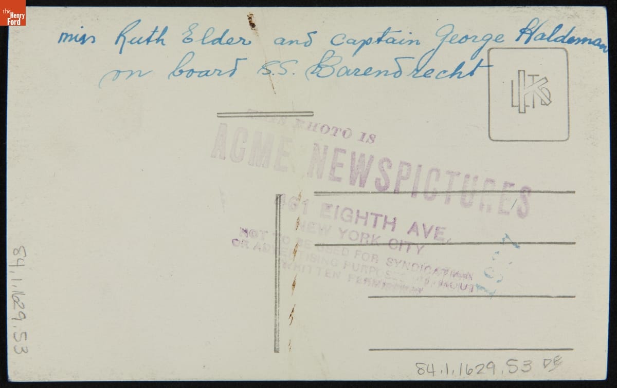 George Haldeman and Ruth Elder aboard the SS Barendrecht, October 1927