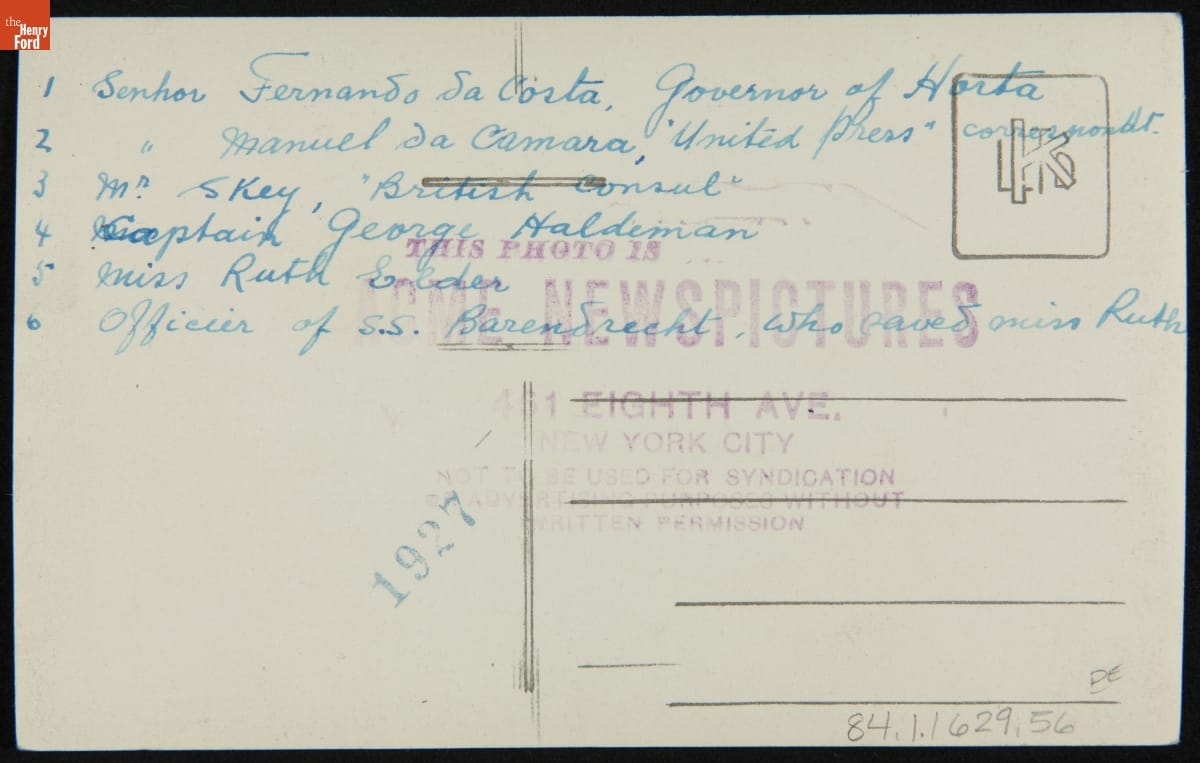 George Haldeman and Ruth Elder after Their Rescue, Horta, Azores, October 1927