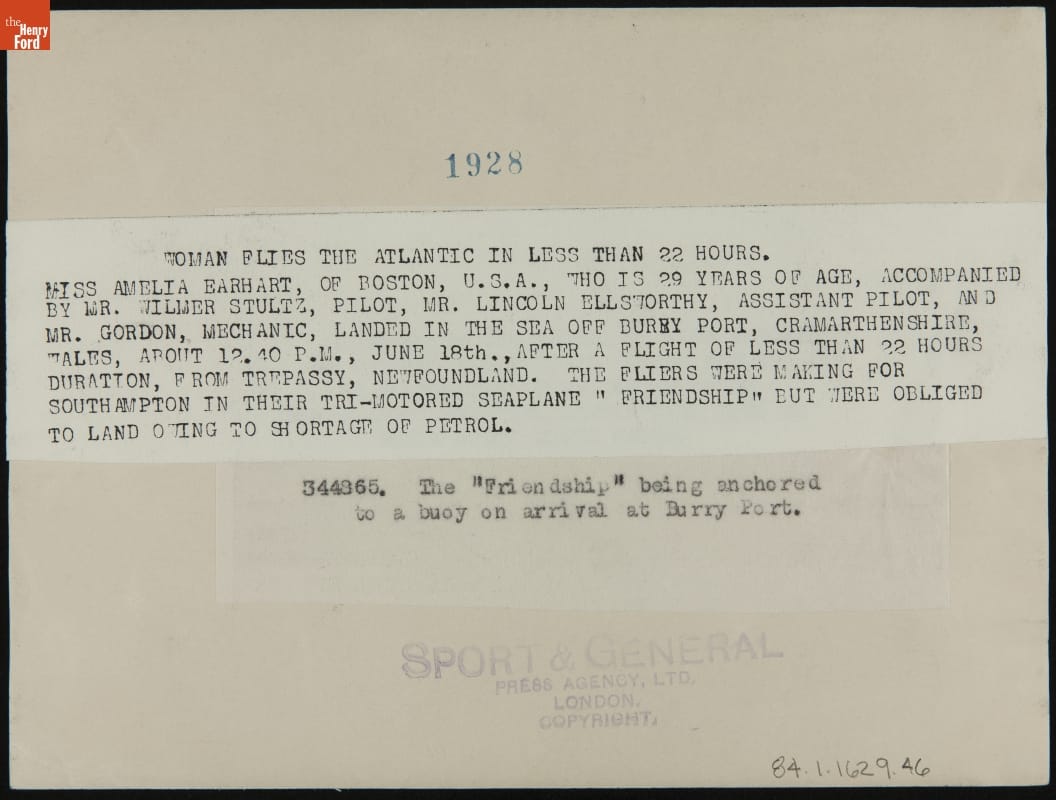 In June 1928 Amelia Earhart became the first woman to fly across the Atlantic Ocean, but largely as a passenger. Wilmer Stultz and Louis Gordon did the actual piloting. The trio made their crossing in a Fokker F.VII Tri-Motor named Friendship. Their successful flight took them from Trepassey Harbour, Newfoundland, to Burry Port, Wales, in 20 hours and 40 minutes.