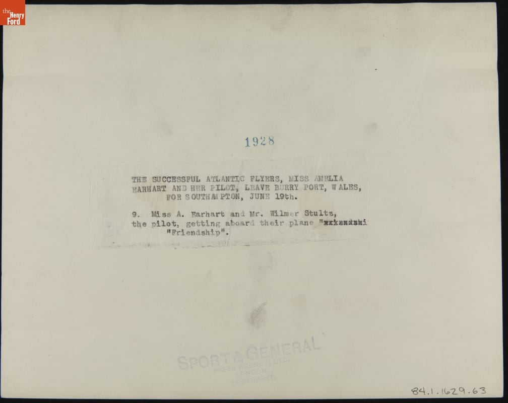 Amelia Earhart Boarding the "Friendship," Departing Burry Port for Southampton, June 19, 1928