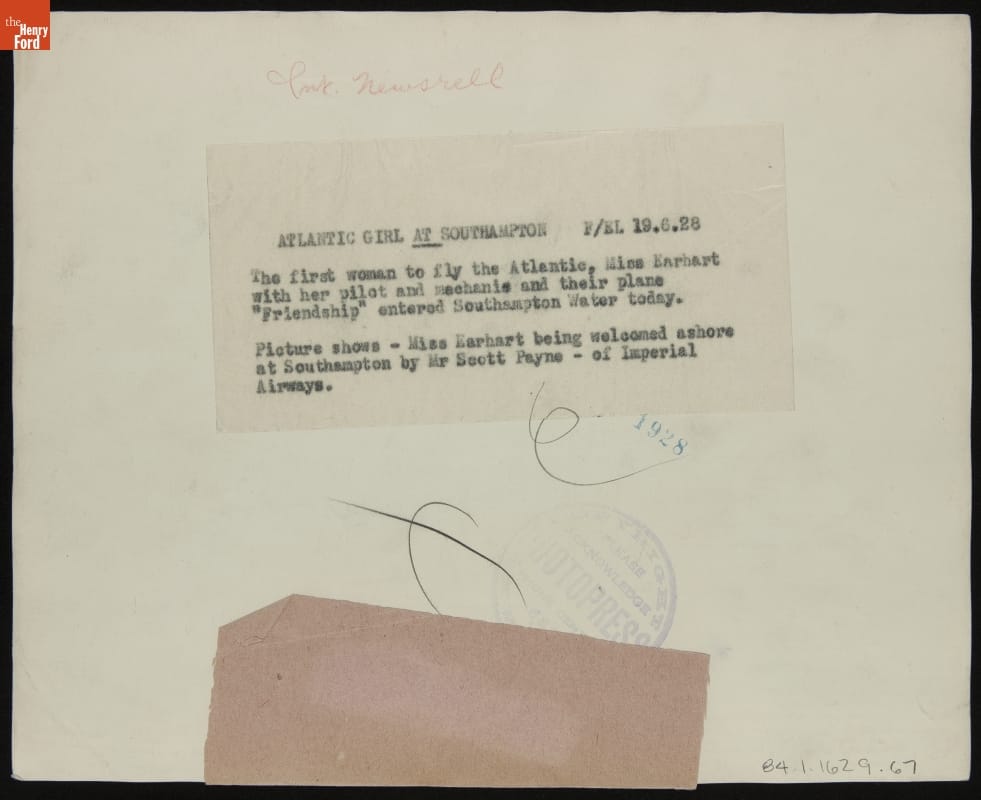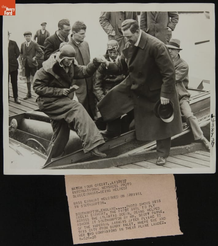 Amelia Earhart Being Helped Ashore at Southampton, June 19, 1928