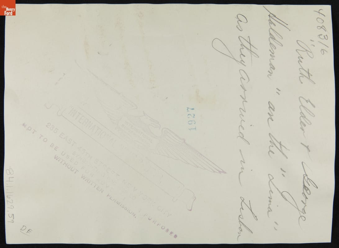 Ruth Elder and George Haldeman aboard the Mail Ship "Lima," October 25, 1927