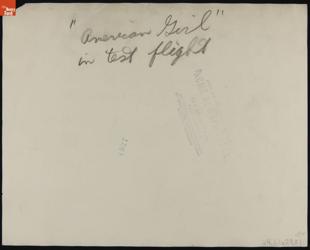 Ruth Elder's "American Girl" on a Test Flight at Curtiss Field, October 1927