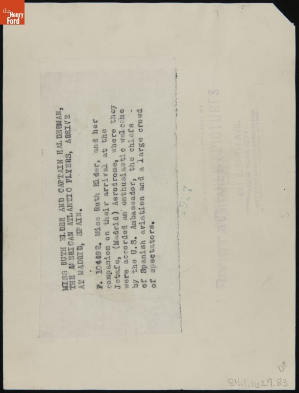 Ruth Elder and George Haldeman Arrive at the Getafe Aerodrome, 1927