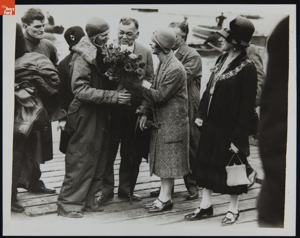 Amelia Earhart Receives a Floral Tribute at Southampton, June 19, 1928
