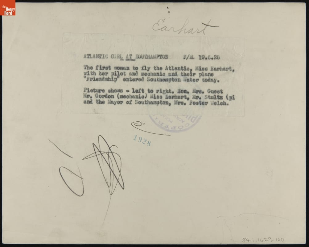 Amelia Earhart and the "Friendship" Crew at Southampton, June 19, 1928