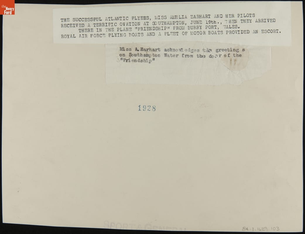 Amelia Earhart and the "Friendship" Crew at Southampton, June 19, 1928