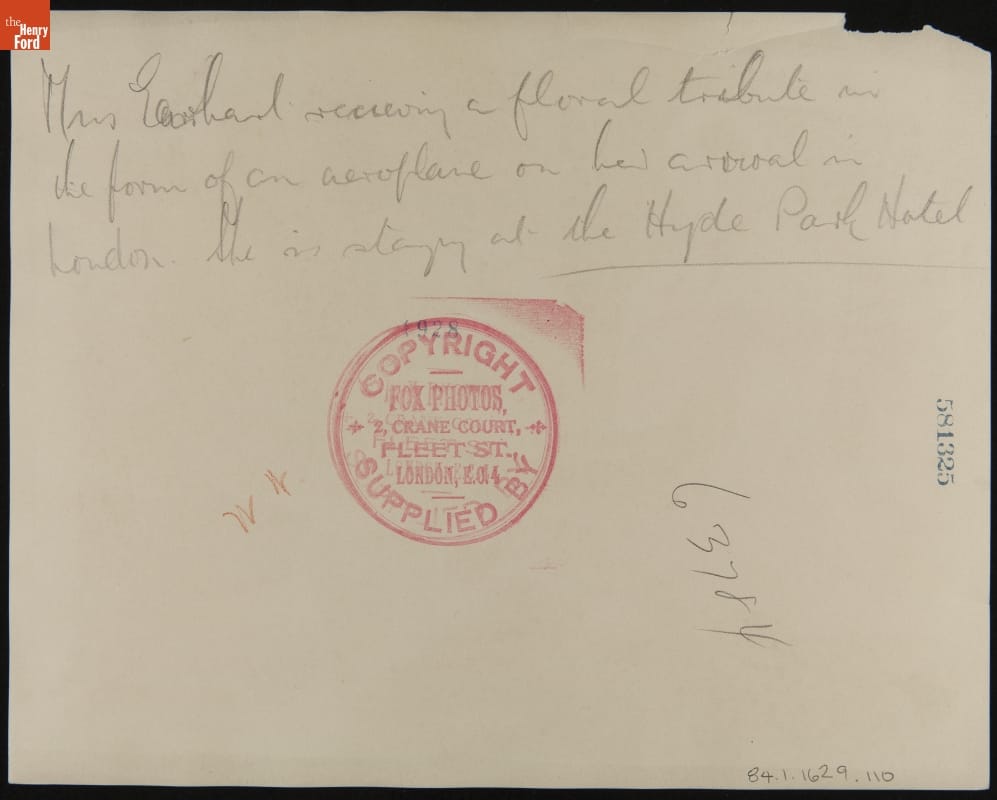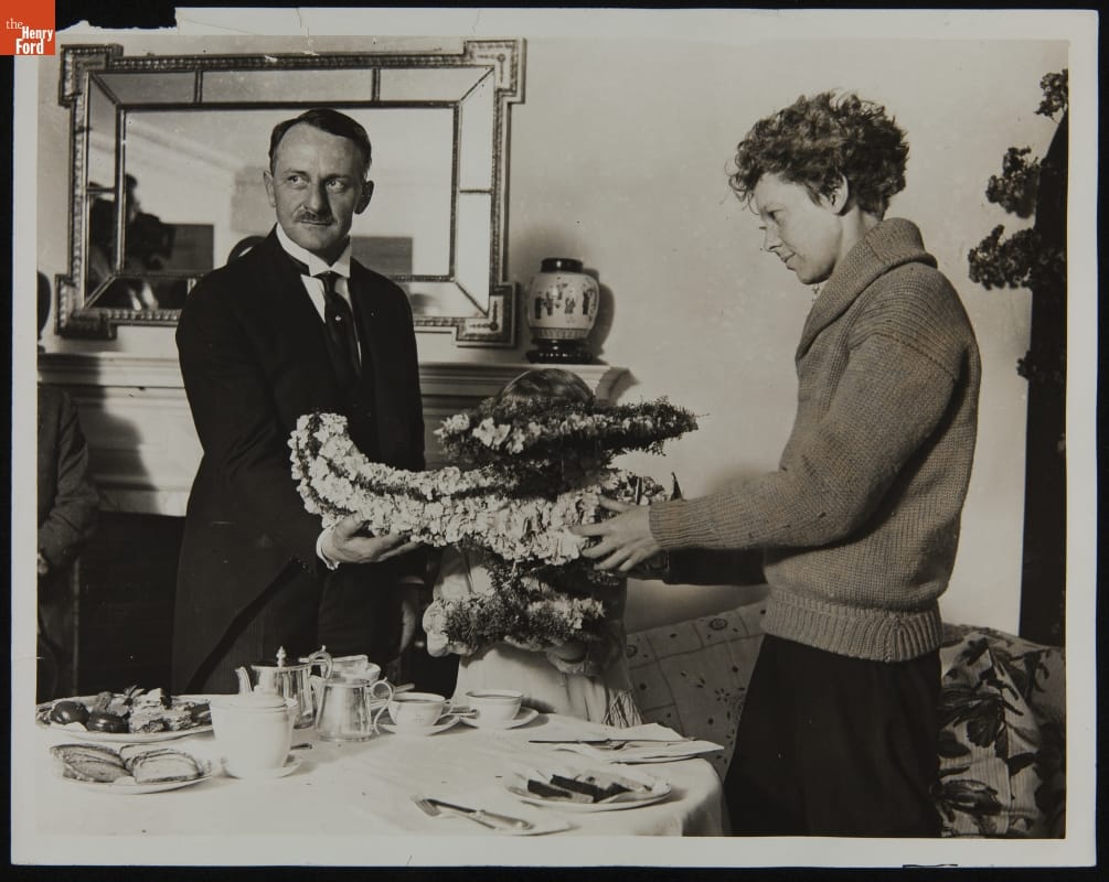 Amelia Earhart Receives a Floral Tribute at London's Hyde Park Hotel, June 1928