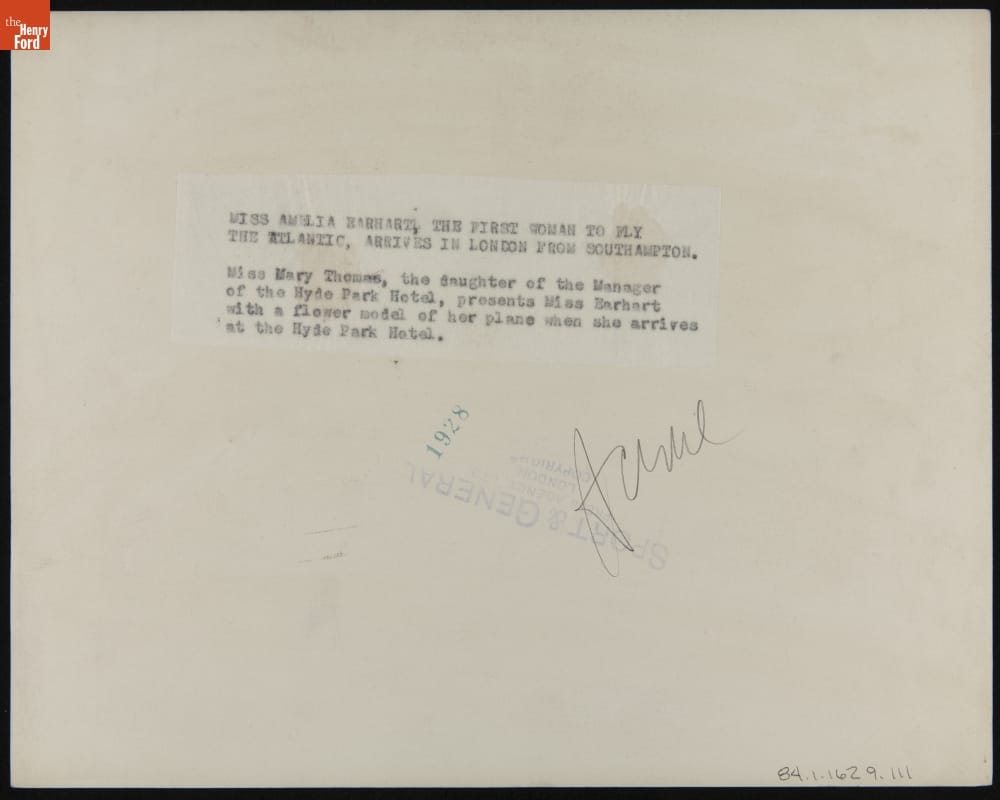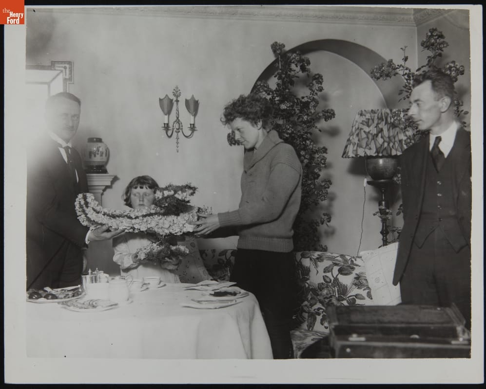 Amelia Earhart Receives a Floral Tribute at London's Hyde Park Hotel, June 1928