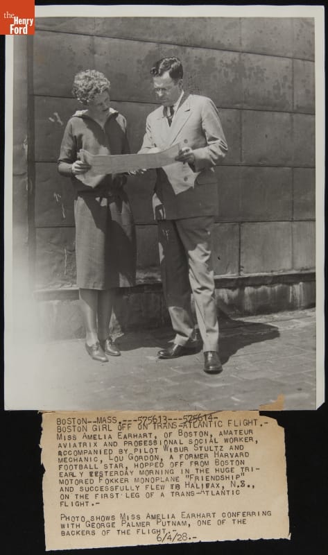 Amelia Earhart and George Putnam Reviewing Plans for the Transatlantic Flight, June 1928