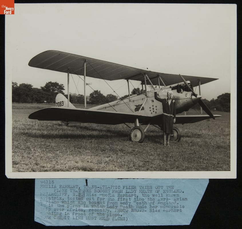 World-renowned Irish pilot Mary, Lady Heath, was an inspiration to Amelia Earhart. After Lady Heath took Earhart for a flight in her Avro Avian biplane, which Heath had flown solo from South Africa to Great Britain, Earhart was so impressed that she bought the aircraft and shipped it back to the United States. Soon Earhart's own fame eclipsed Lady Heath's.