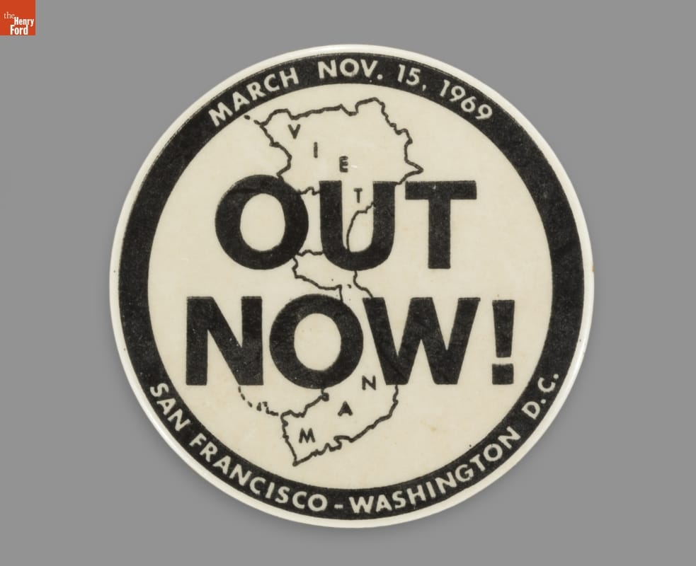 Button, "March Nov. 15, 1969 OUT NOW! San Francisco - Washington D.C.," 15 November 1969