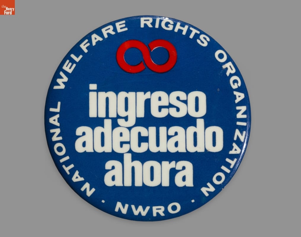 Button, "National Welfare Rights Organization Ingreso Adecuado Ahora NWRO," 1966-1975