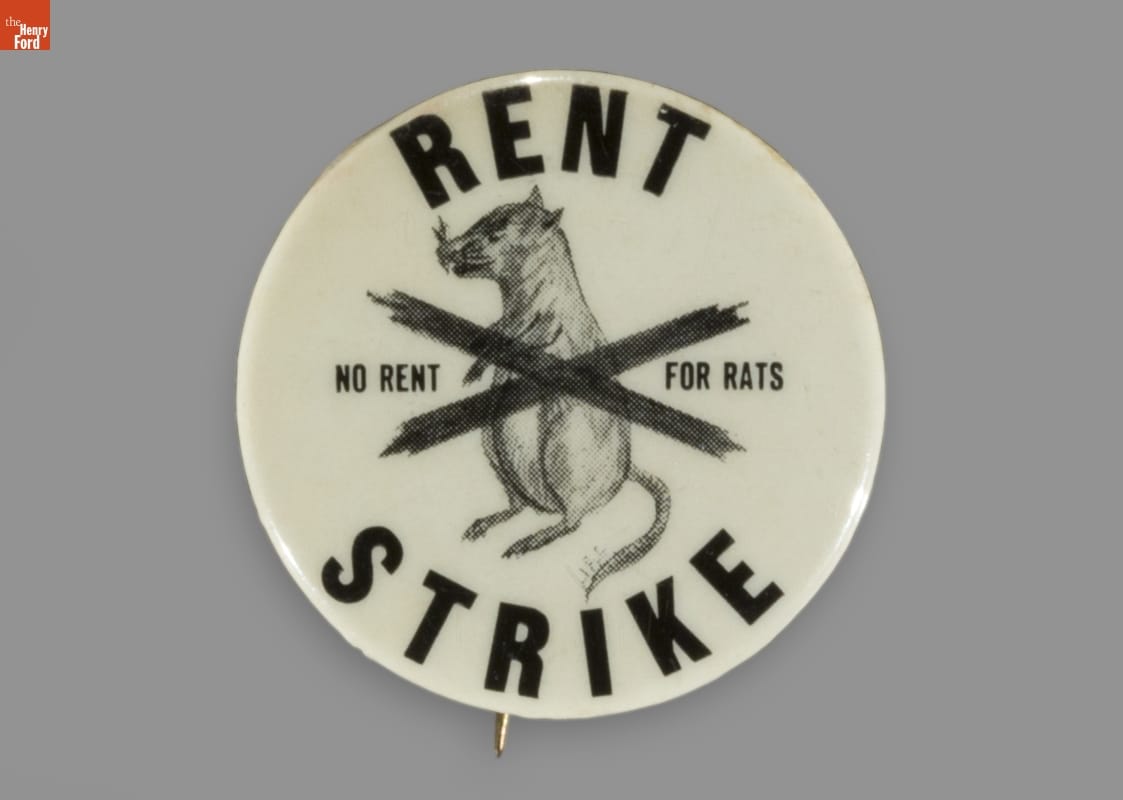 Button, "Rent Strike, No Rent for Rats," 1964-1975
