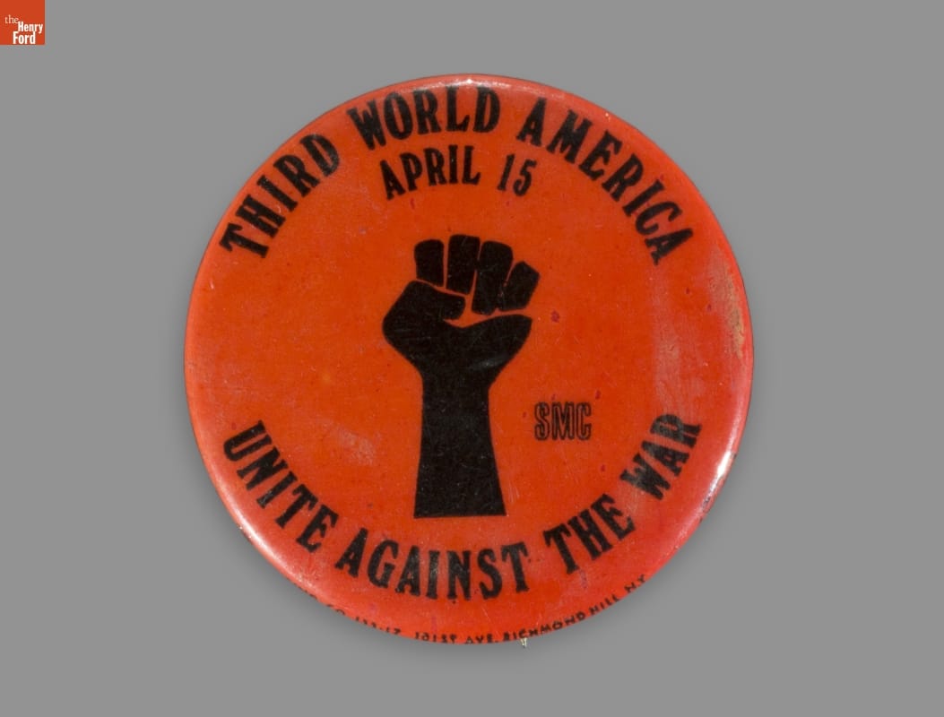 Button, "Third World America Unite Against the War April 15 SMC," 1967