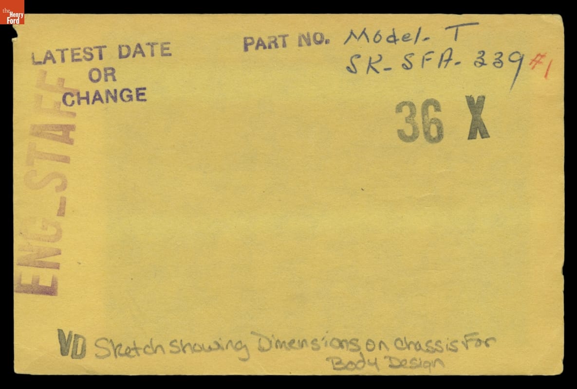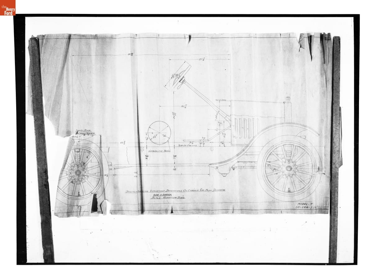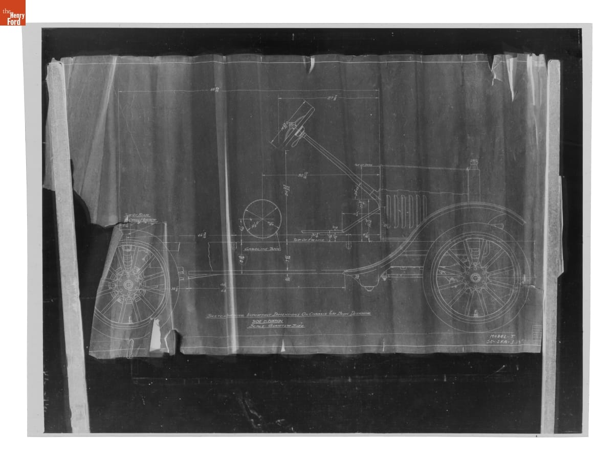The Ford Motor Company created over a million parts drawings from 1903 to 1957. Many of these drawings specify engineering requirements for the components of Ford-made vehicles--including automobiles, trucks, tractors, military vehicles and Tri-motor airplanes. Others document assembly components, stages of casting and forging, or experimental designs. Beginning in the 1940s, Ford transferred the drawings to microfilm.