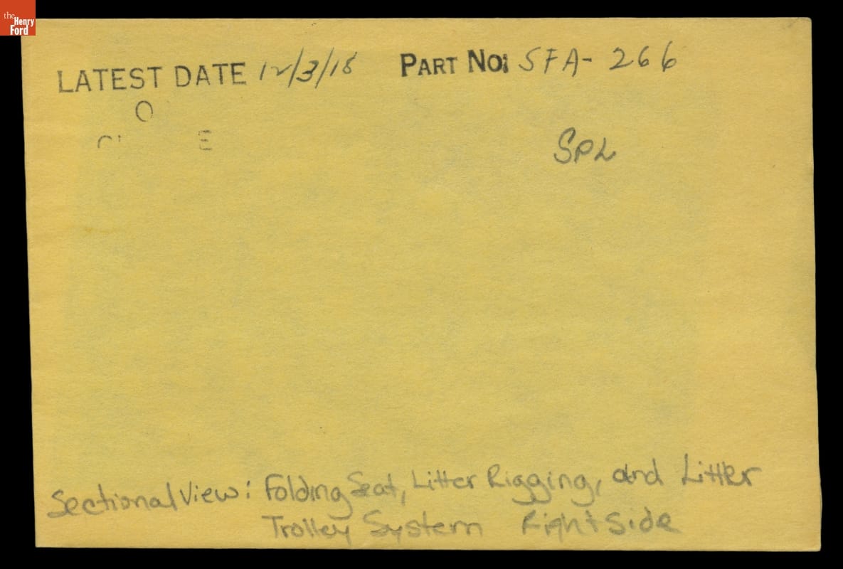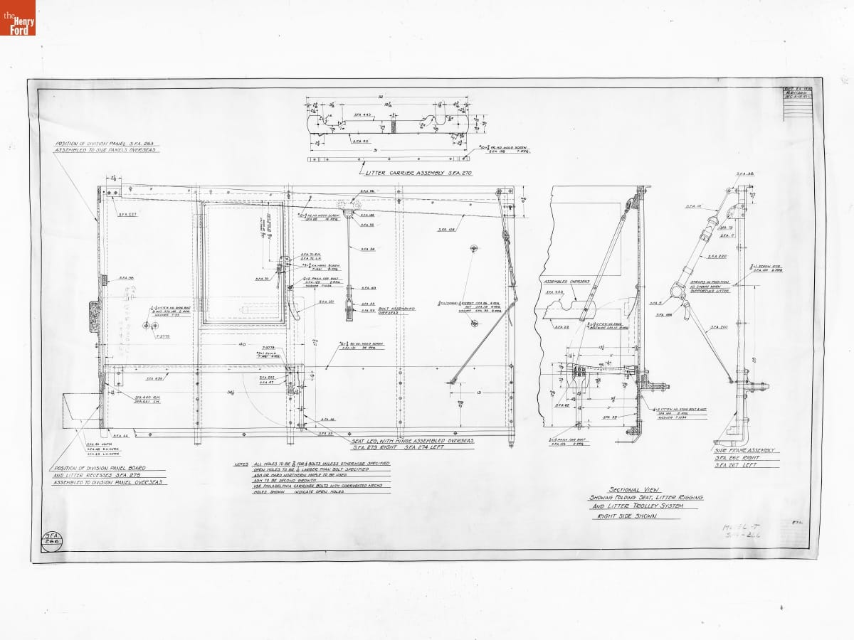 Drawing, "Sectional View Showing Folding Seat, Litter Rigging and Litter Trolley System Right Side Shown," Ford Model T Ambulance, December 3, 1918