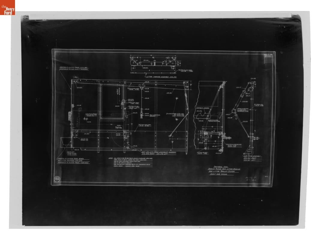 The Ford Motor Company created over a million parts drawings from 1903 to 1957. Many of these drawings specify engineering requirements for the components of Ford-made vehicles--including automobiles, trucks, tractors, military vehicles and Tri-motor airplanes. Others document assembly components, stages of casting and forging, or experimental designs. Beginning in the 1940s, Ford transferred the drawings to microfilm.