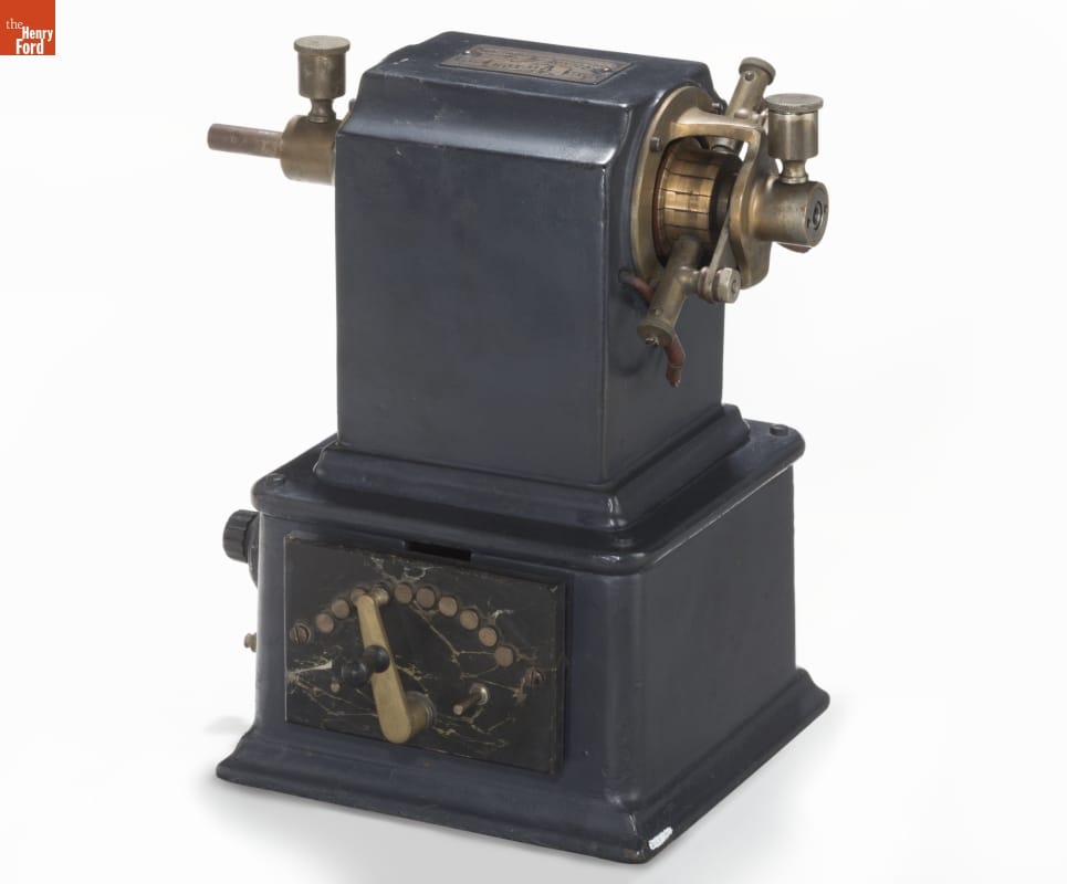 In the late 19th and early 20th centuries, American companies began producing electric-powered motors and related equipment for use in factories, businesses, medical offices, and the home. Victor Electric Company, founded in 1893, specialized in electrical medical equipment, like this mechanical vibrator massage motor. Victor merged with General Electric in 1920.