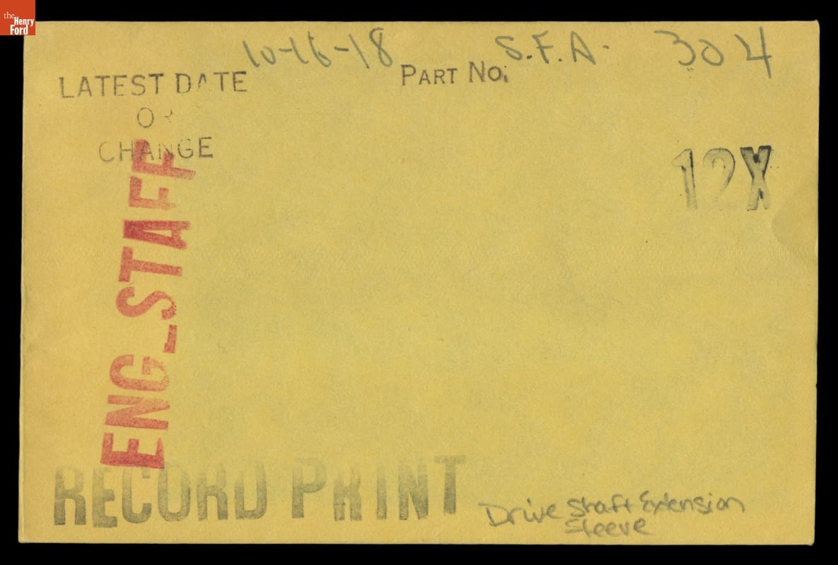 The Ford Motor Company created over a million parts drawings from 1903 to 1957. Many of these drawings specify engineering requirements for the components of Ford-made vehicles--including automobiles, trucks, tractors, military vehicles and Tri-motor airplanes. Others document assembly components, stages of casting and forging, or experimental designs. Beginning in the 1940s, Ford transferred the drawings to microfilm.