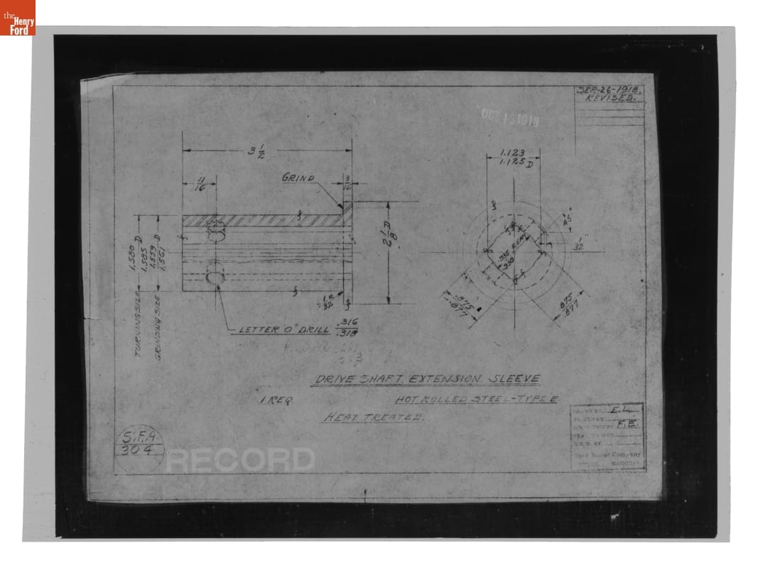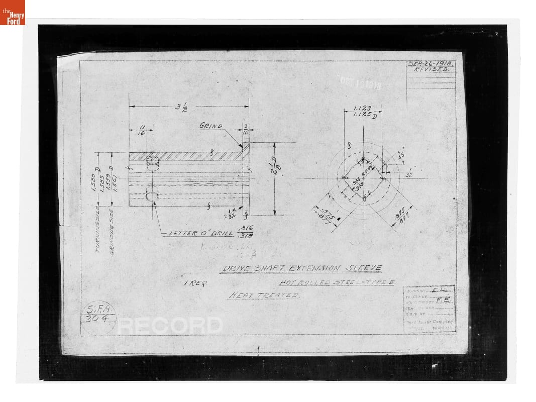 Drawing, "Drive Shaft Extension Sleeve," Ford Model T Ambulance, October 16, 1918
