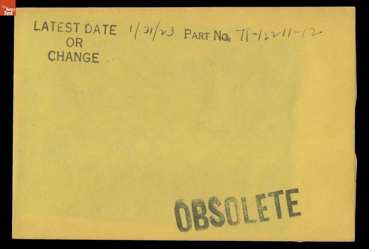 The Ford Motor Company created over a million parts drawings from 1903 to 1957. Many of these drawings specify engineering requirements for the components of Ford-made vehicles--including automobiles, trucks, tractors, military vehicles and Tri-motor airplanes. Others document assembly components, stages of casting and forging, or experimental designs. Beginning in the 1940s, Ford transferred the drawings to microfilm.