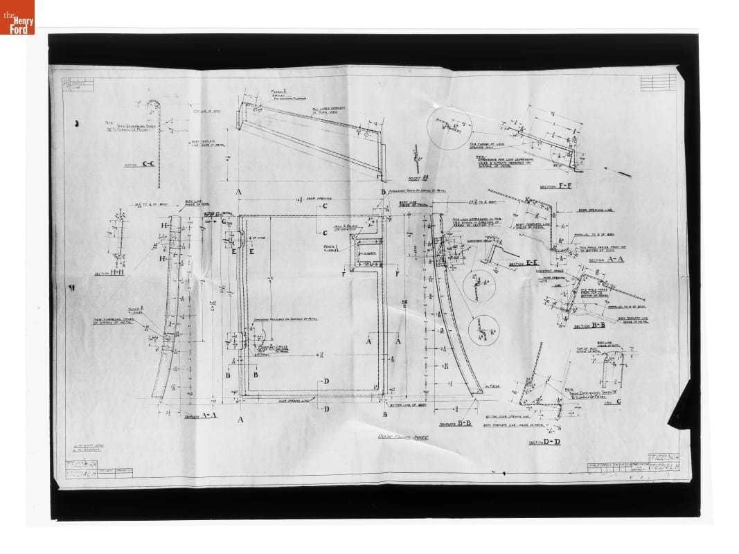The Ford Motor Company created over a million parts drawings from 1903 to 1957. Many of these drawings specify engineering requirements for the components of Ford-made vehicles--including automobiles, trucks, tractors, military vehicles and Tri-motor airplanes. Others document assembly components, stages of casting and forging, or experimental designs. Beginning in the 1940s, Ford transferred the drawings to microfilm.