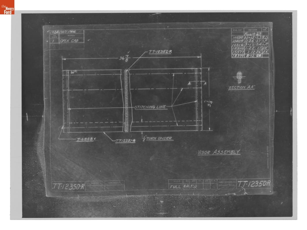 Drawing, "Visor Assembly," Ford Model T Truck, August 12, 1926